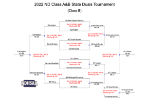 - 170 – Silas Reinke (#1 Lisbon) over Landon Stang (#4 Hettinger/Scranton) Fall 5:57