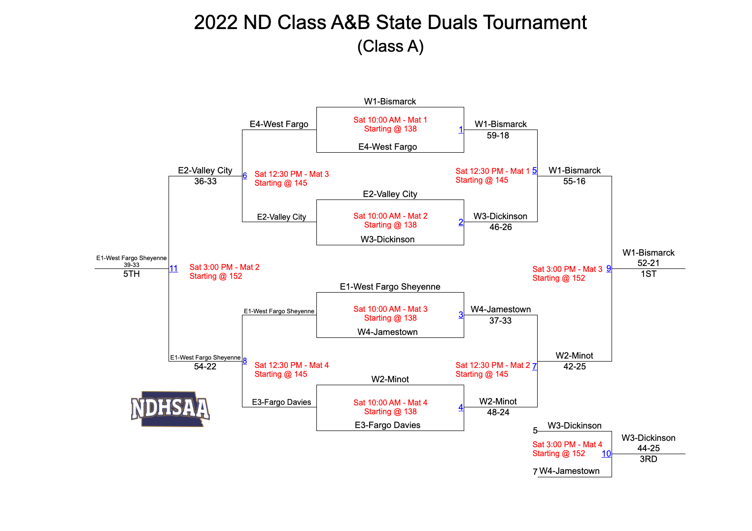 - 152 – Tate Olson (W1-Bismarck) over Houston Crimmins (W3-Dickinson) Dec 7-0