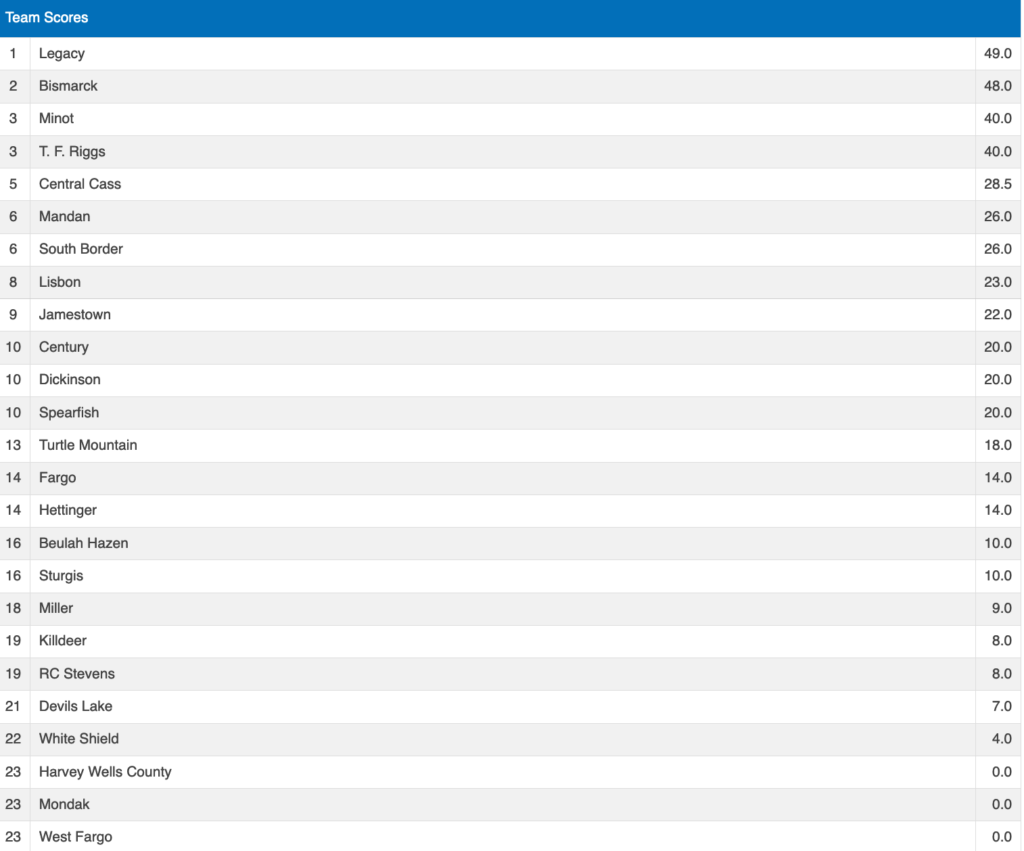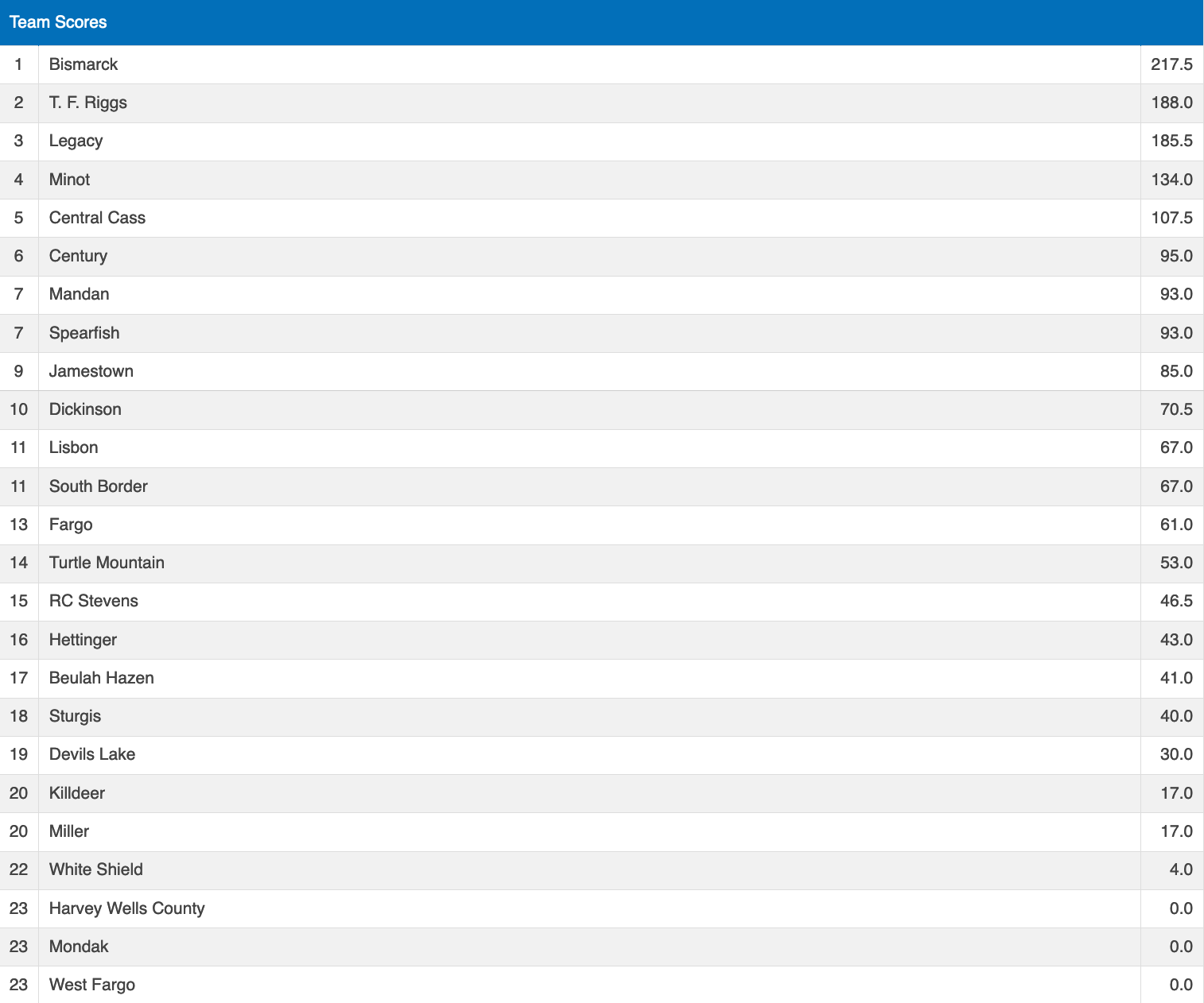 • Mekayla Stordalen (Century) 4-0, Fr. over Jersey Daniele (Bismarck ) 0-4, Fr. (Fall 0:11)