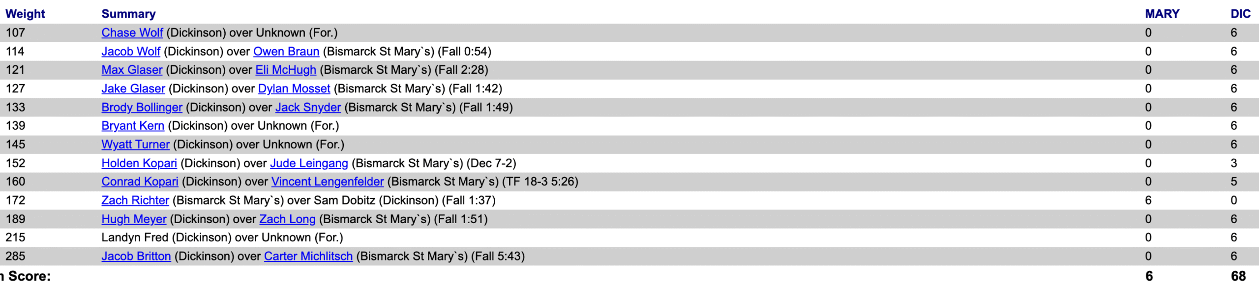 Dickinson @ Bismarck Saint Mary's