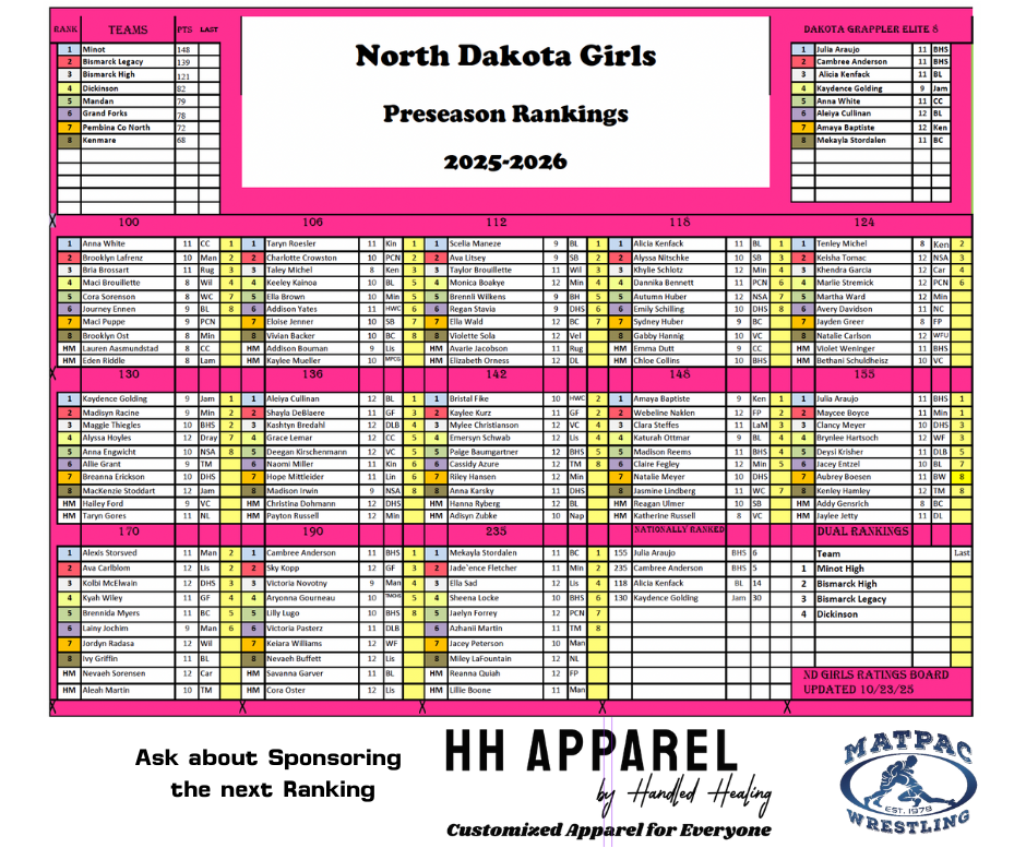 <a href="https://www.dakotagrappler.com/wp-content/uploads/2025/10/WTE-ND-Girls-Rankings.png"><img class="alignnone wp-image-22024 size-medium" src="https://www.dakotagrappler.com/wp-content/uploads/2025/10/WTE-ND-Girls-Rankings-300x251.png" alt="" width="300" height="251" /></a>