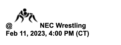 Webster hosts NEC <img class="alignnone size-medium wp-image-5188 [ftmt_id]" src="https://www.dakotagrappler.com/wp-content/uploads/2023/02/Screenshot-2023-02-11-at-10.46.24-PM-300x111.png" alt="" width="300" height="111" /> <a href="https://www.dakotagrappler.com/wp-content/uploads/2023/02/NEC-Brackets.pdf">NEC Brackets</a> <img class="[ftmt_id] aligncenter wp-image-5189 size-large" src="https://www.dakotagrappler.com/wp-content/uploads/2023/02/Screenshot-2023-02-11-at-10.49.10-PM-1024x367.png" alt="" width="1024" height="367" />