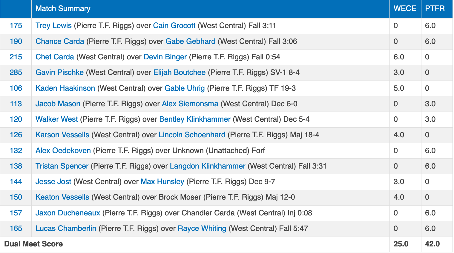 West Central vs Pierre Riggs