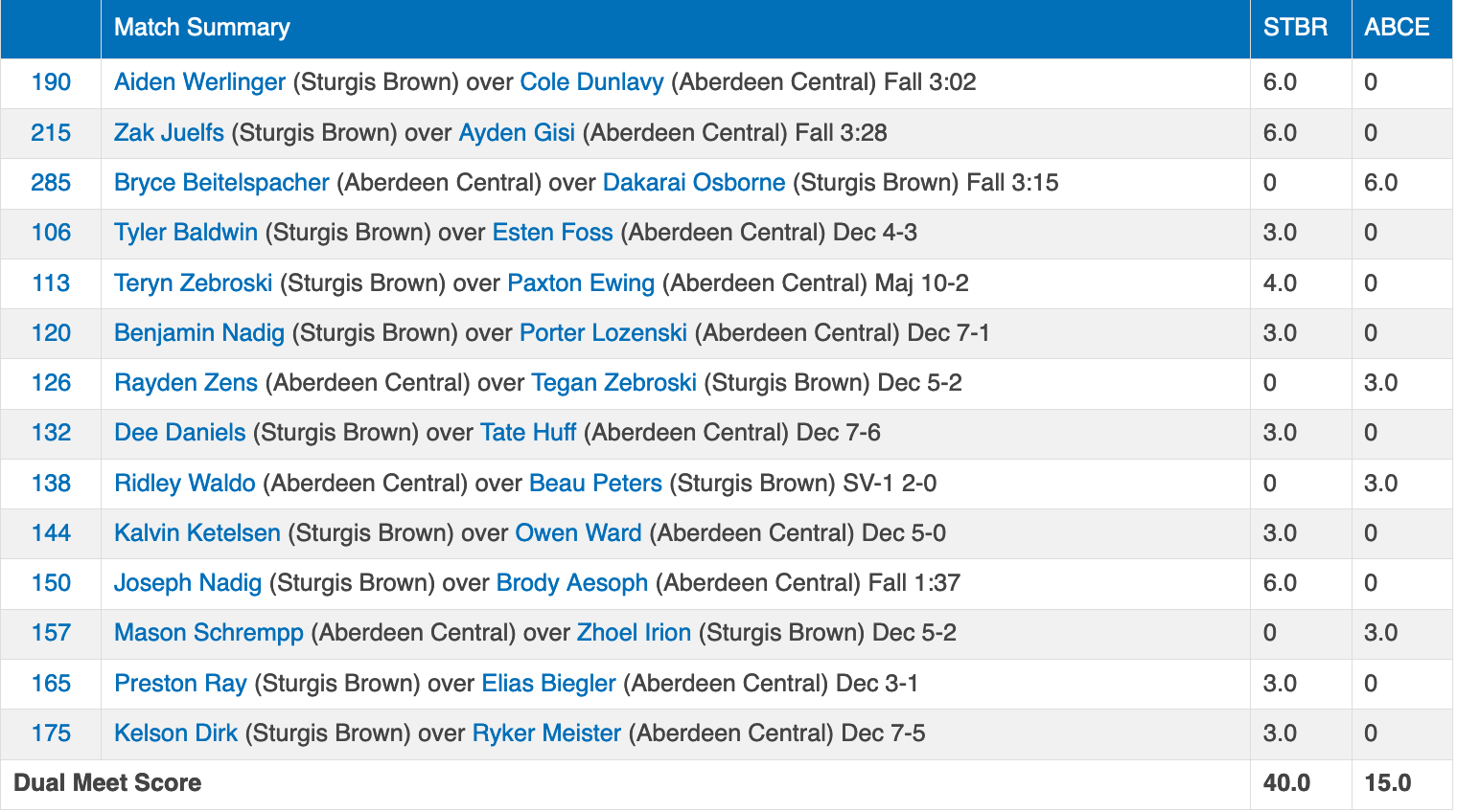 Congratulations goes out to Sturgis Brown winning the SDHSAA State Duals with victories over Tea Area 57-13, Aberdeen Central 40-15, and Watertown 55-13.