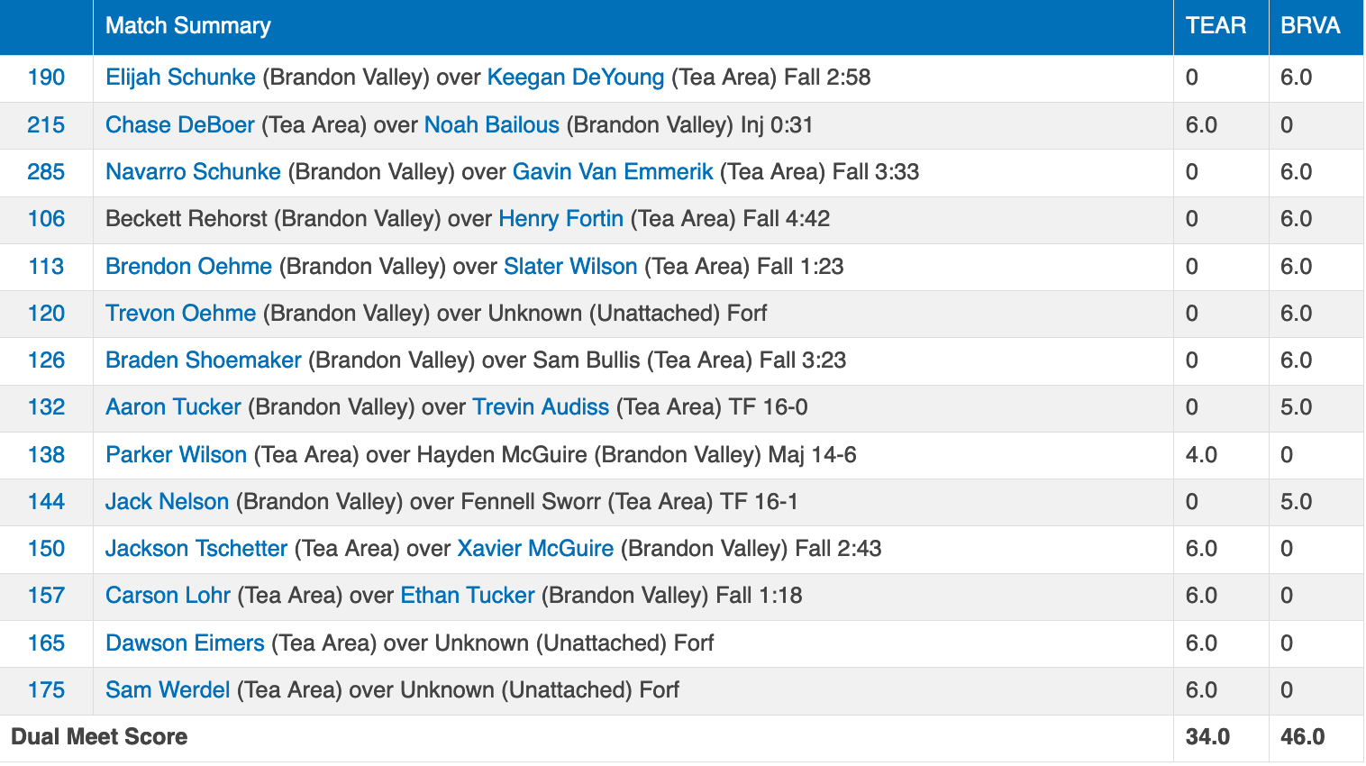Tea Area vs Brandon Valley