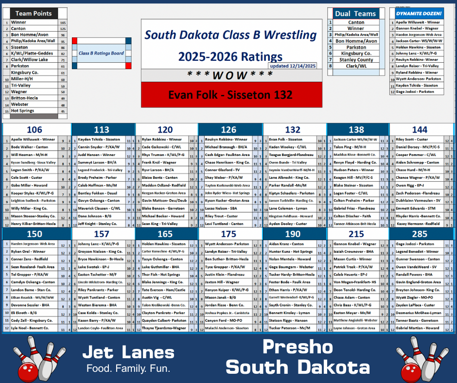 Get a closer look with this pdf version... not always perfectly clear on Facebook. <a href="https://www.dakotagrappler.com/wp-content/uploads/2025/12/SDB2.png"><img class="alignnone wp-image-25978 size-medium" src="https://www.dakotagrappler.com/wp-content/uploads/2025/12/SDB2-300x251.png" alt="" width="300" height="251" /></a> <a href="https://www.dakotagrappler.com/wp-content/uploads/2025/12/SD-B-Week-2-2025-26-rankings.pdf">SD B Week-2-2025-26-rankings</a>