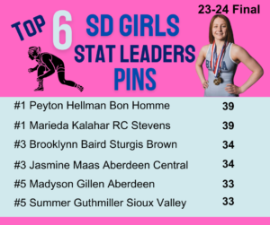 I have been told some of State has not synched to the final stats so I will adjust in a day or two... thanks <a href="https://www.dakotagrappler.com/wp-content/uploads/2024/03/23.png"><img class="[ftmt_id] alignnone wp-image-7941 size-medium" src="https://www.dakotagrappler.com/wp-content/uploads/2024/03/23-300x251.png" alt="" width="300" height="251" /></a> <a href="https://www.dakotagrappler.com/wp-content/uploads/2024/03/24.png"><img class="[ftmt_id] alignnone wp-image-7942 size-medium" src="https://www.dakotagrappler.com/wp-content/uploads/2024/03/24-300x251.png" alt="" width="300" height="251" /></a> <a href="https://www.dakotagrappler.com/wp-content/uploads/2024/03/25.png"><img class="[ftmt_id] alignnone wp-image-7943 size-medium" src="https://www.dakotagrappler.com/wp-content/uploads/2024/03/25-300x251.png" alt="" width="300" height="251" /></a> <a href="https://www.dakotagrappler.com/wp-content/uploads/2024/03/26.png"><img class="[ftmt_id] alignnone wp-image-7944 size-medium" src="https://www.dakotagrappler.com/wp-content/uploads/2024/03/26-300x251.png" alt="" width="300" height="251" /></a> <a href="https://www.dakotagrappler.com/wp-content/uploads/2024/03/27.png"><img class="[ftmt_id] alignnone wp-image-7945 size-medium" src="https://www.dakotagrappler.com/wp-content/uploads/2024/03/27-300x251.png" alt="" width="300" height="251" /></a> <a href="https://www.dakotagrappler.com/wp-content/uploads/2024/03/28.png"><img class="[ftmt_id] alignnone wp-image-7946 size-medium" src="https://www.dakotagrappler.com/wp-content/uploads/2024/03/28-300x251.png" alt="" width="300" height="251" /></a> <a href="https://www.dakotagrappler.com/wp-content/uploads/2024/03/29.png"><img class="[ftmt_id] alignnone wp-image-7947 size-medium" src="https://www.dakotagrappler.com/wp-content/uploads/2024/03/29-300x251.png" alt="" width="300" height="251" /></a><a href="https://www.dakotagrappler.com/wp-content/uploads/2024/03/SD-Girls-Stat-Leaders-Final-2024wins.png"><img class="[ftmt_id] alignnone wp-image-7948 size-medium" src="https://www.dakotagrappler.com/wp-content/uploads/2024/03/SD-Girls-Stat-Leaders-Final-2024wins-300x251.png" alt="" width="300" height="251" /></a>