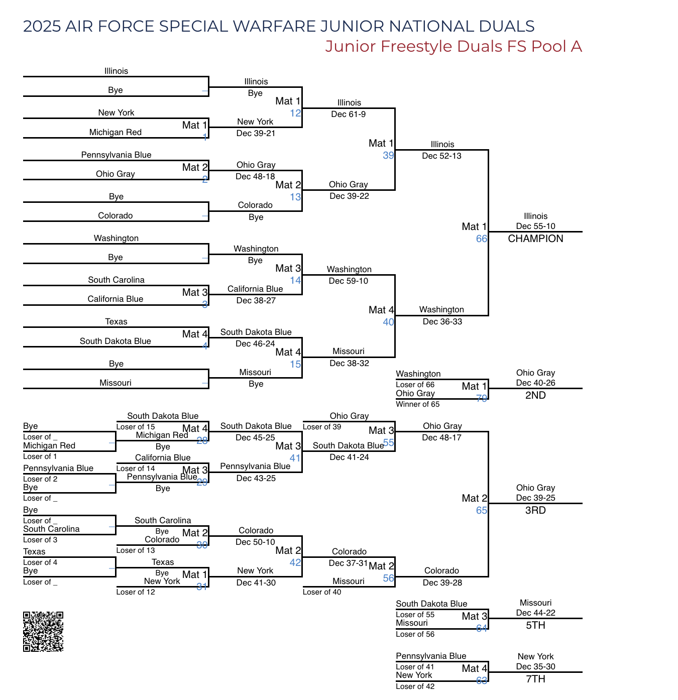 | 132 | Jaylen Civil, MO over Tyler Woodring, SD B (TF 25-15 (3:24) ) | 1 | 4 |