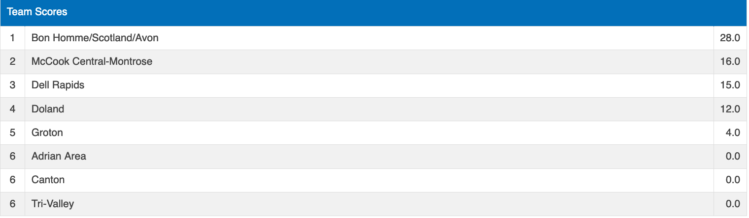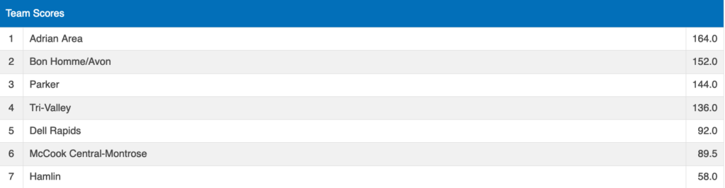 Top of the Rock Dell Rapids Boys and Girls Results