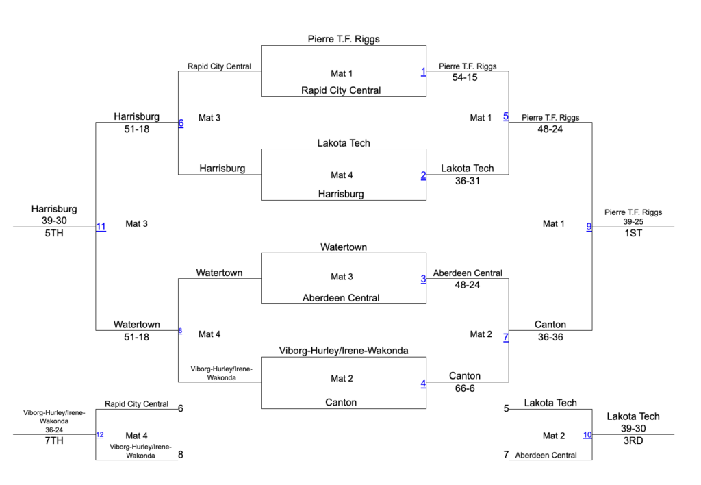 - 114 – Hadley Bryant (Harrisburg) over Langston Huffman (Rapid City Central) Dec 7-2